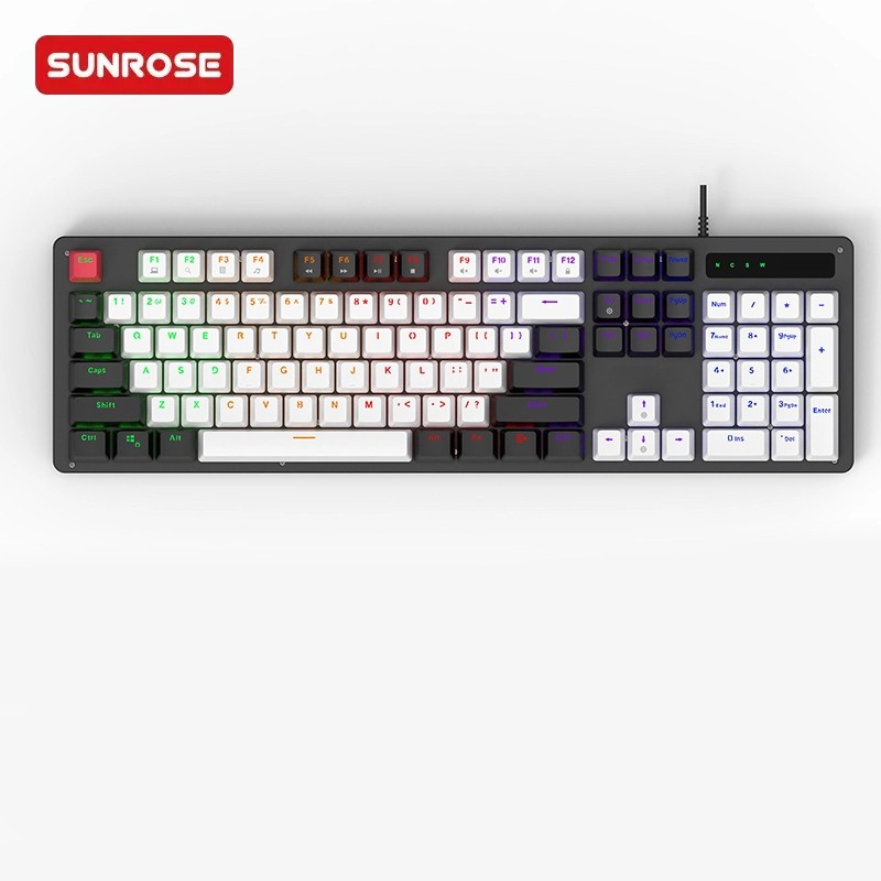 RGB LED 背光彩色可调亮度功能 FN+INS:7 种黑光模式,让您的桌面呈现出美妙的景象。按下 FN+1-5 可切换至固定游戏模式,然后按下 FN+HOME 可根据无需驱动程序的设置来调整每个按键的颜色。